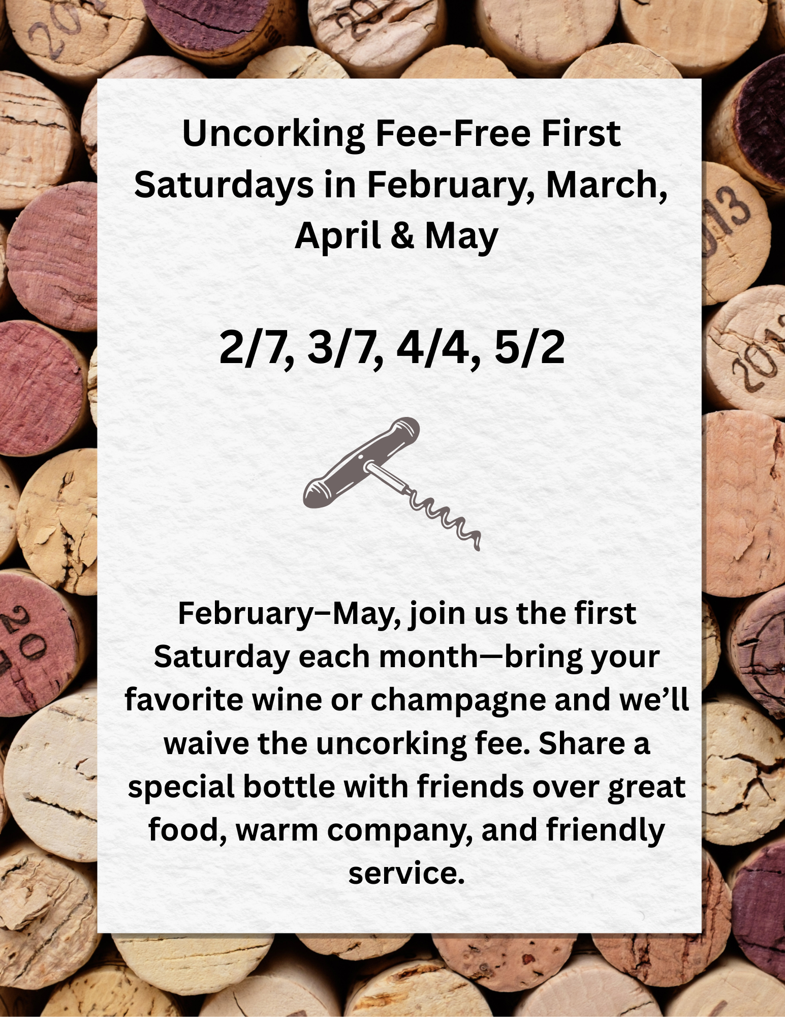 NO UNCORKING FEE!